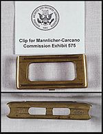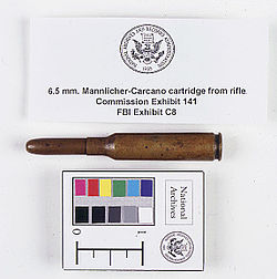 The Oswald rifle is an Italian Fucile di Fanteria (Eng: Infantry rifle) Modello 91/38 (Model 1891/1938) manufactured at the Royal Arms Factory in Terni, Italy, in 1940. Its serial number identified it as the single weapon of its type made with that number. The so-called Model 91 bolt action rifle had been introduced in 1891 by Salvatore Carcano for the Turin Army Arsenal. After 1895, the Modello 91 used an en bloc ammunition clip similar, but not identical, to the Austrian Mannlicher ammunition clips, and hence the names of Mannlicher and Carcano came to be associated with the Oswald rifle; this included association with them by the Warren Commission. The ammunition used in the clip was the 6.5x52mm Cartuccia Modello 1895 rimless cartridge (designed in 1890), also sometimes called Mannlicher-Carcano ammunition, after the rifle designer and the general type of clip it used.